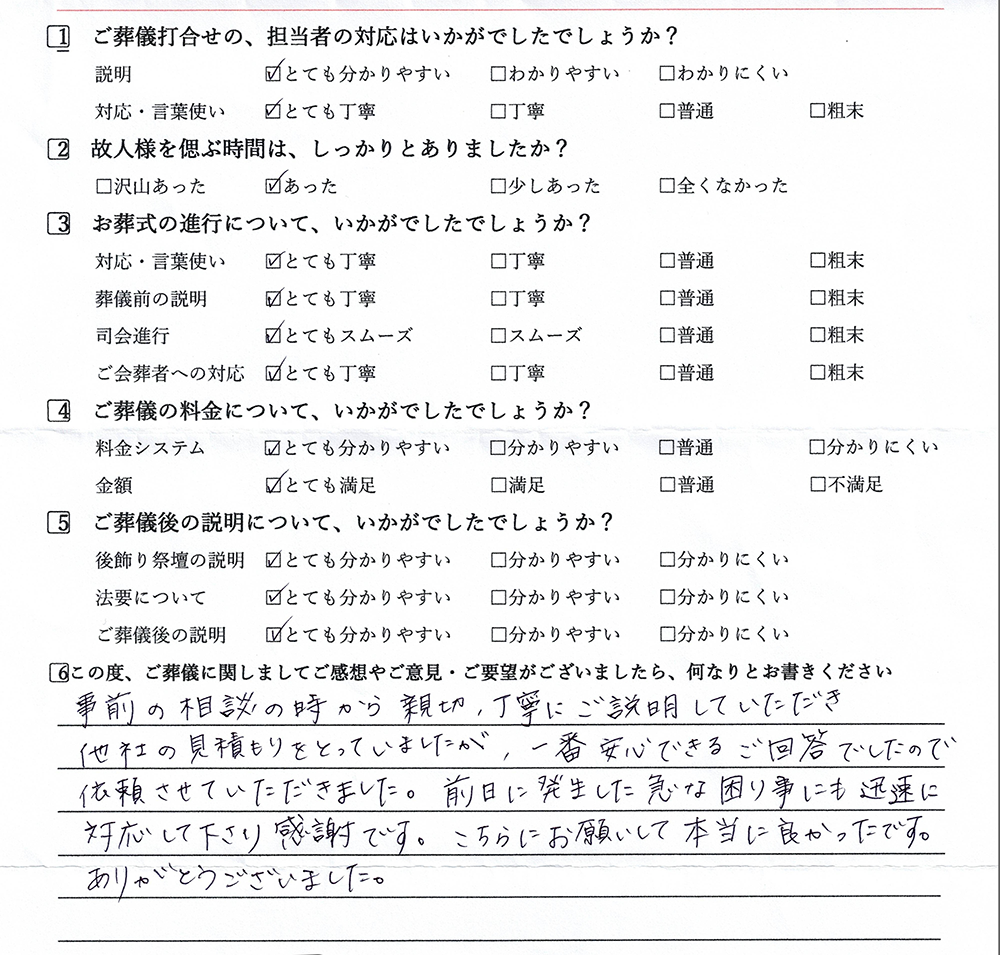 悔いのない送り出しのお手伝いが出来て本当に良かったです。