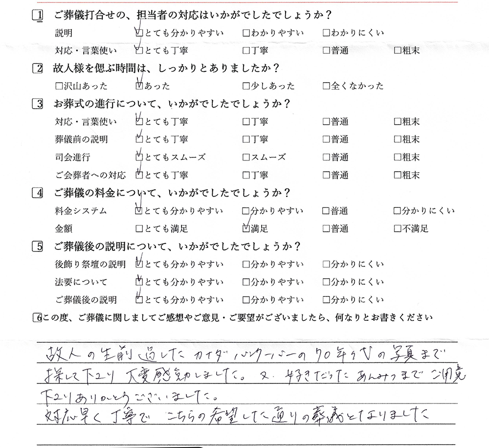 対応は早く丁寧で、こちらの希望した通りの葬儀になりました。