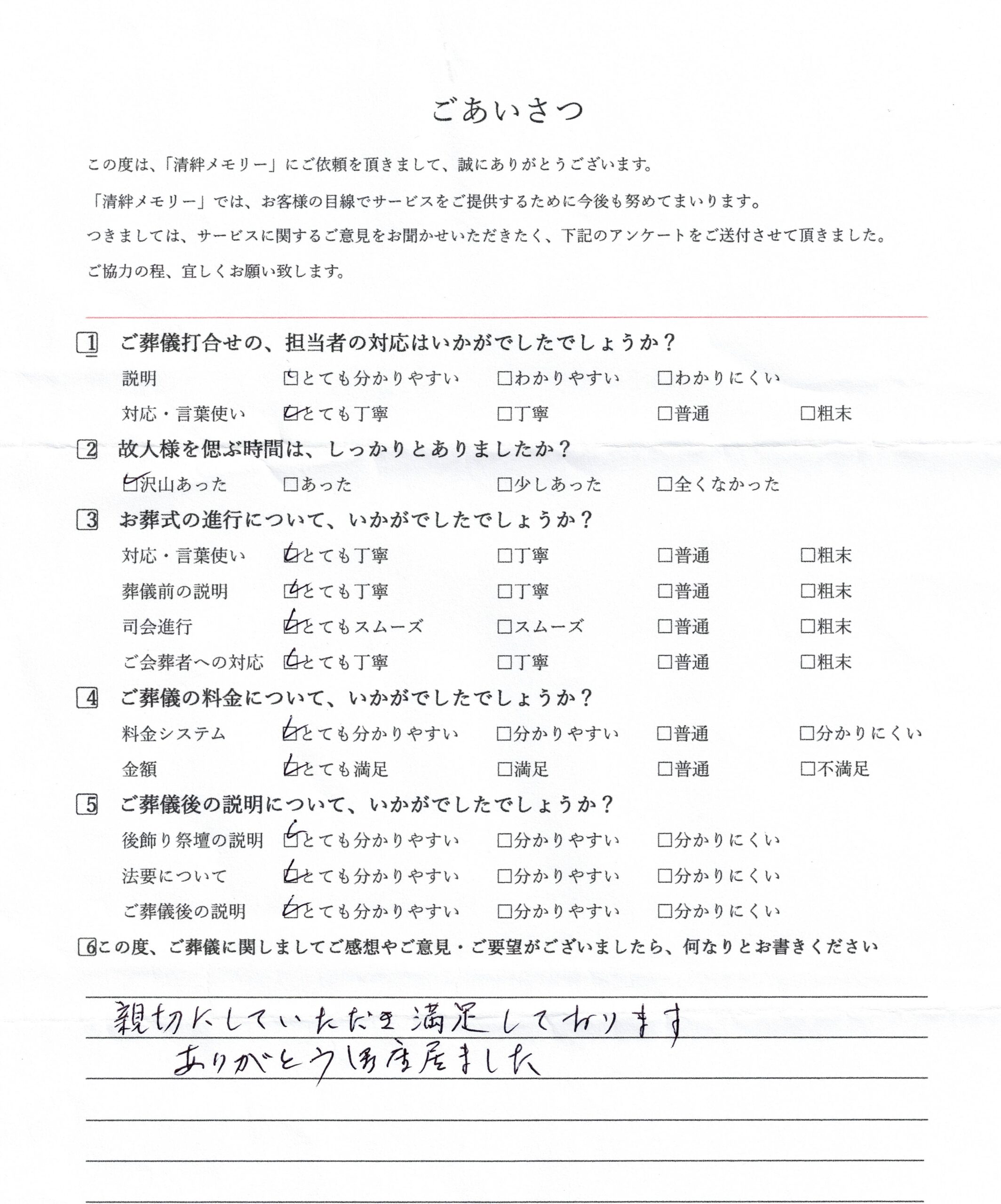 ご遺族の心を満たして送り出しのお手伝い出来た事をスタッフ一同安堵しております。