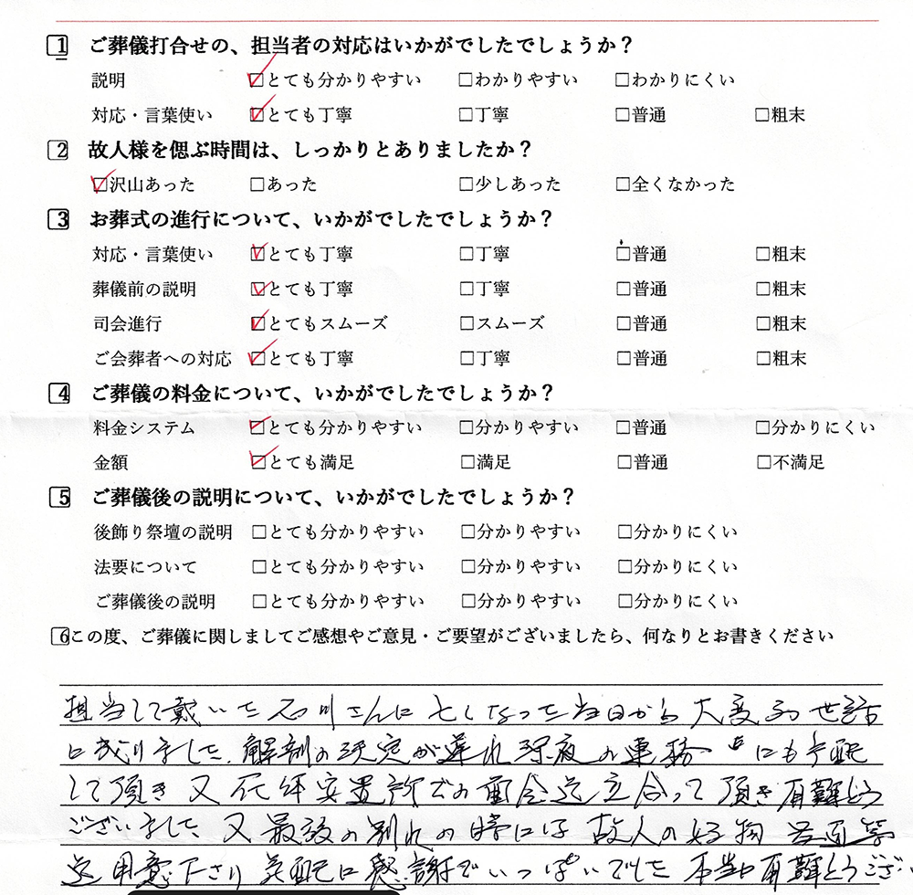 担当していただいた石川さんに亡くなった当日から大変お世話になりました。