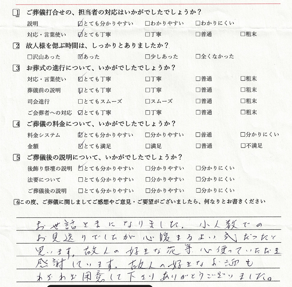 少人数でのお見送りでしたが心暖まるよい式だったと思います。
