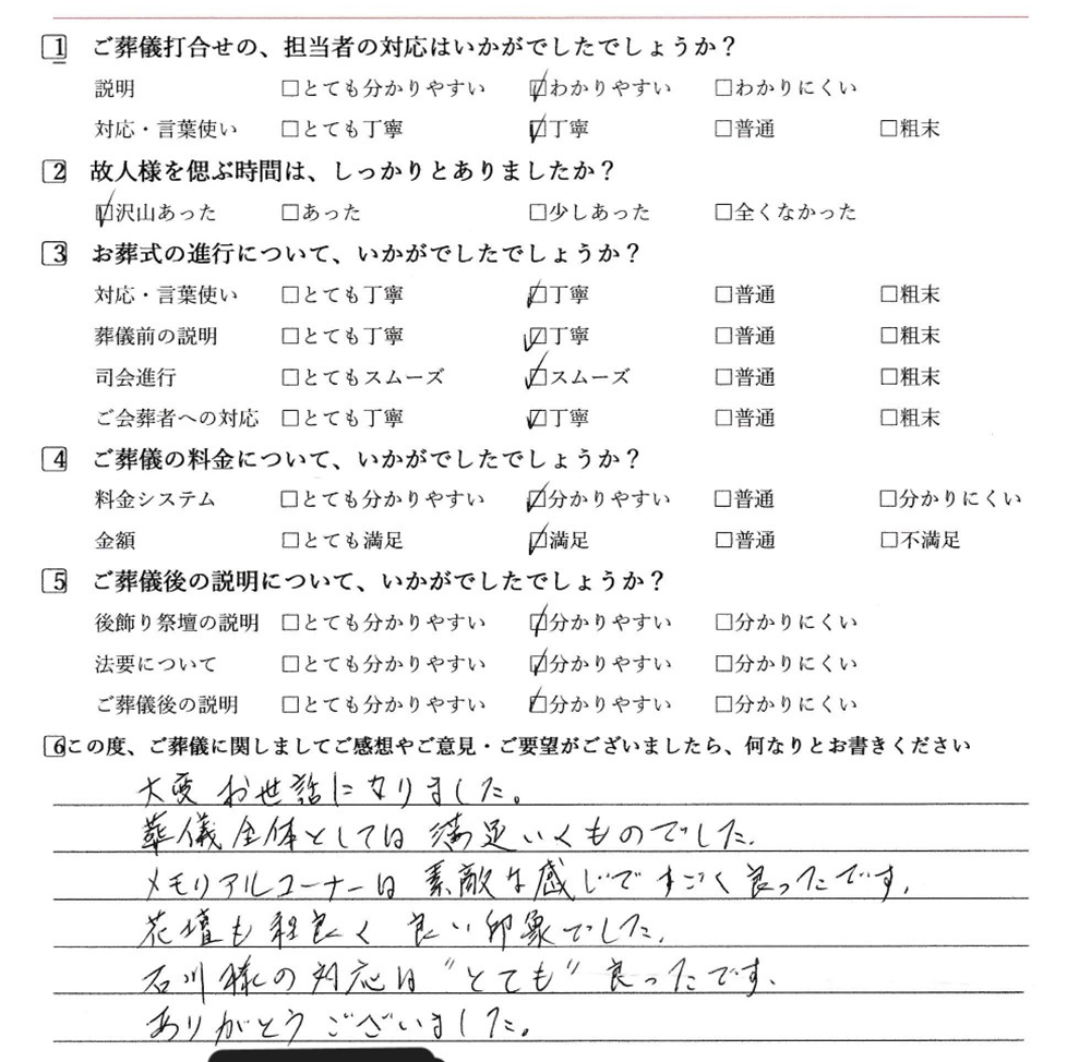 親戚の皆様が、故人様を思い出しながら見ている様子が嬉しく思いました。